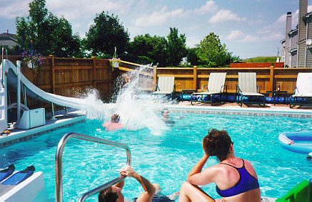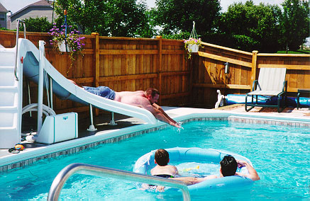 14/24Alex and Skel look on as Dave 'The Official Weight Tester of Equipment' checks out our slide.