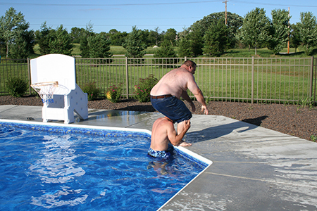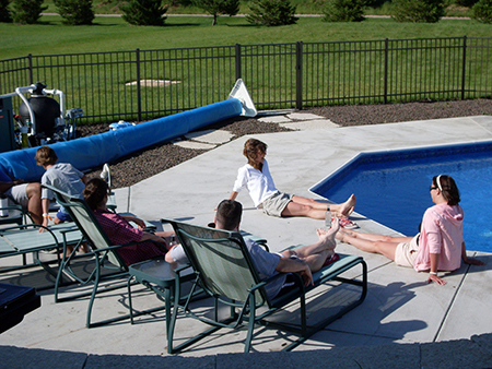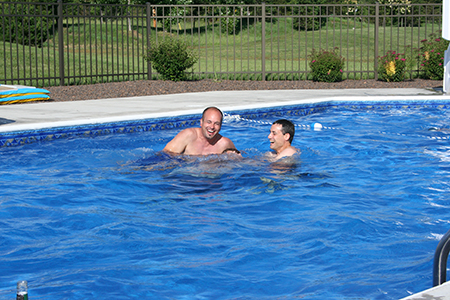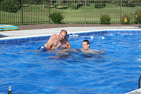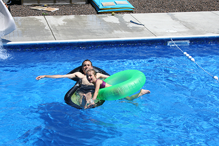 16/129Amelia exerts her power by making Luke pull her around the pool.
